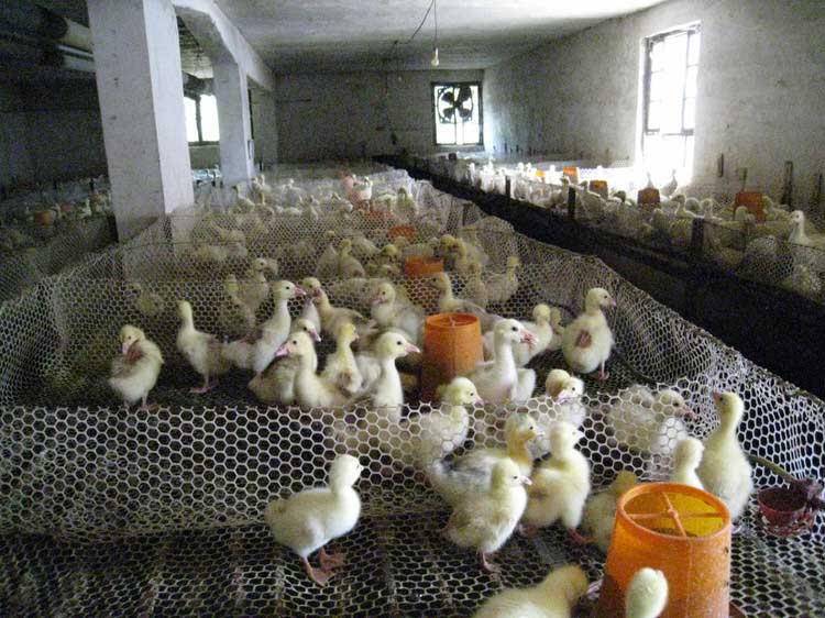 2、育肥舍。舍內(nèi)設(shè)棚架,分單列式和雙列式兩種,分小欄,每欄約10~12平方米,可容納中等體型的中成鵝60~80只。